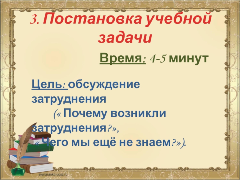 Постановка учебной задачи;