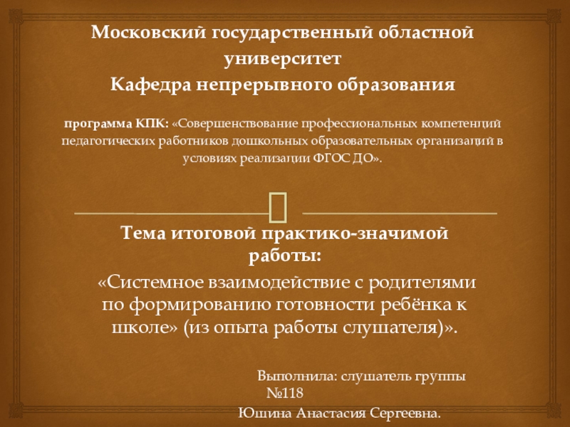 «Социализация» — знакомство родителей с трудностями и достижениями детей на родительских собраниях, организация выставок детских работ и совместных работ детей и их родителей; вовлечение родителей в подготовку и проведение мероприятий в ДОУ.
