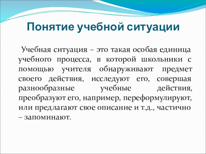Слайд 7Понятие учебной ситуации