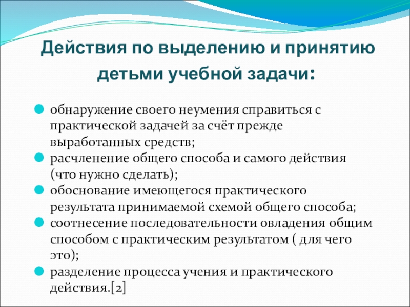 Действия по выделению и принятию детьми учебной задачи: