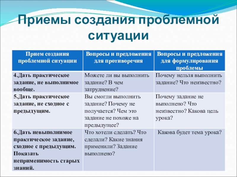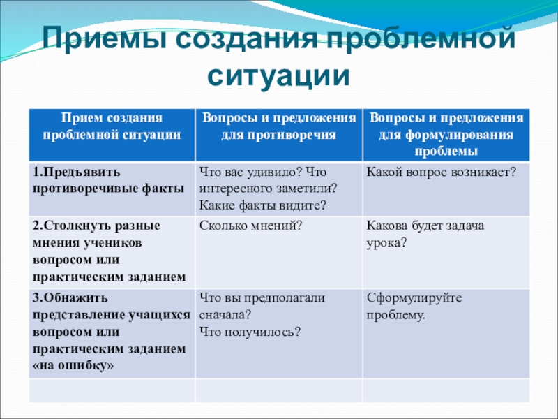 Слайд 20Приемы создания проблемной ситуации
