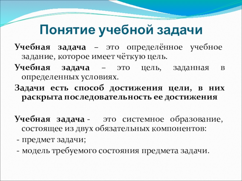 Слайд 3Понятие учебной задачи