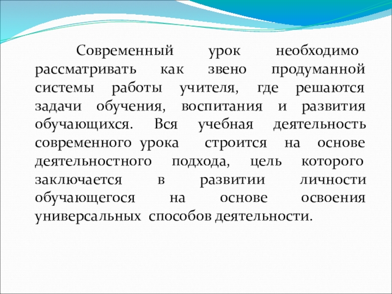 Слайд 2 Современный урок необходимо рассматривать как звено продуманной системы работы