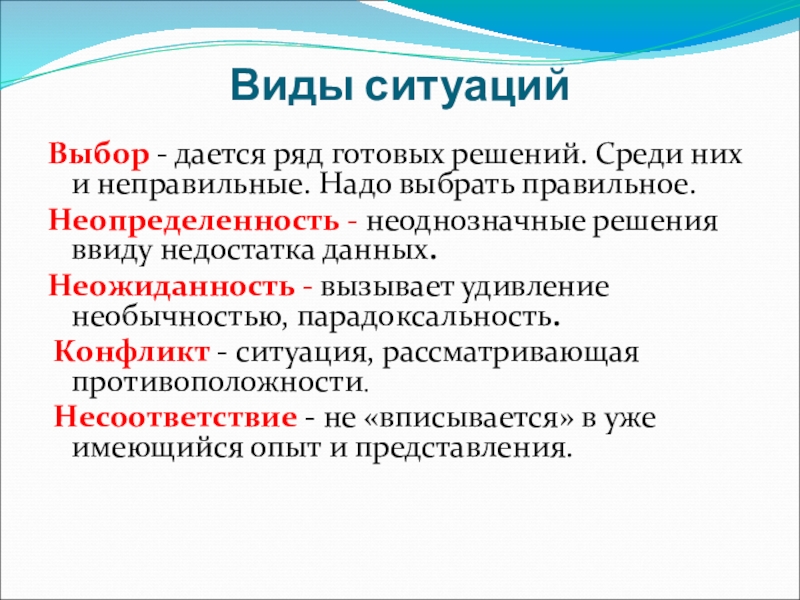 Слайд 10Виды ситуаций