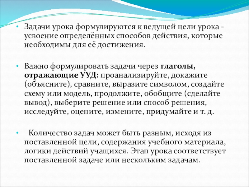 Слайд 4Задачи урока формулируются к ведущей цели урока - усвоение определённых способов