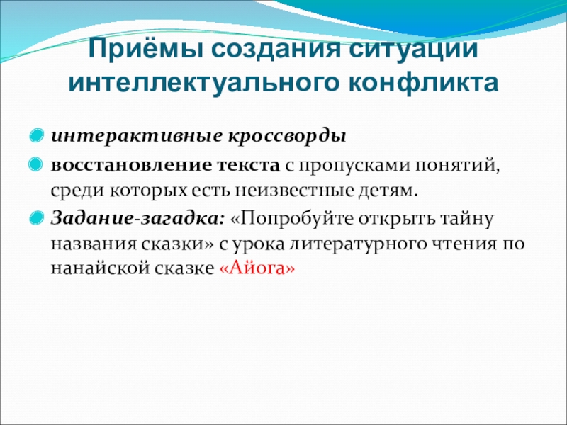Слайд 21Приёмы создания ситуации интеллектуального конфликта