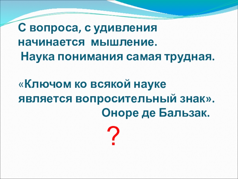 Слайд 23С вопроса, с удивления начинается мышление.