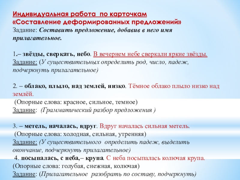 Задание: (У существительных определить род, число, падеж, подчеркнуть прилагательное)