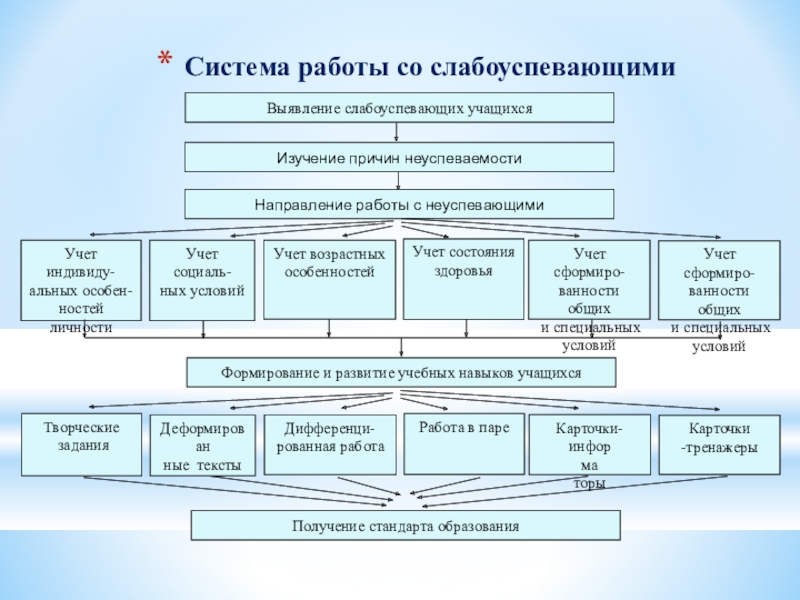 В работе со слабыми учащимися учитель должен опираться на следующие правила,