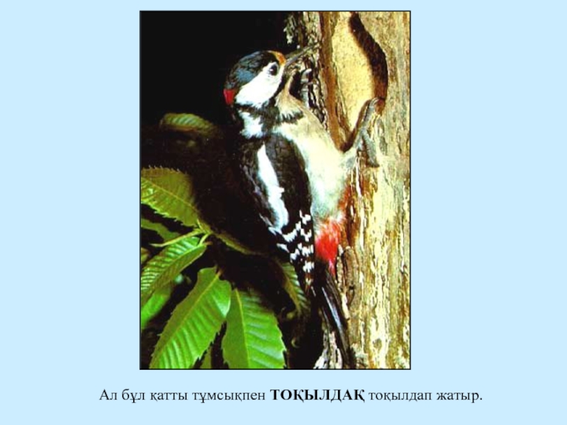 Слайд 4Ал бұл қатты тұмсықпен ТОҚЫЛДАҚ тоқылдап жатыр.