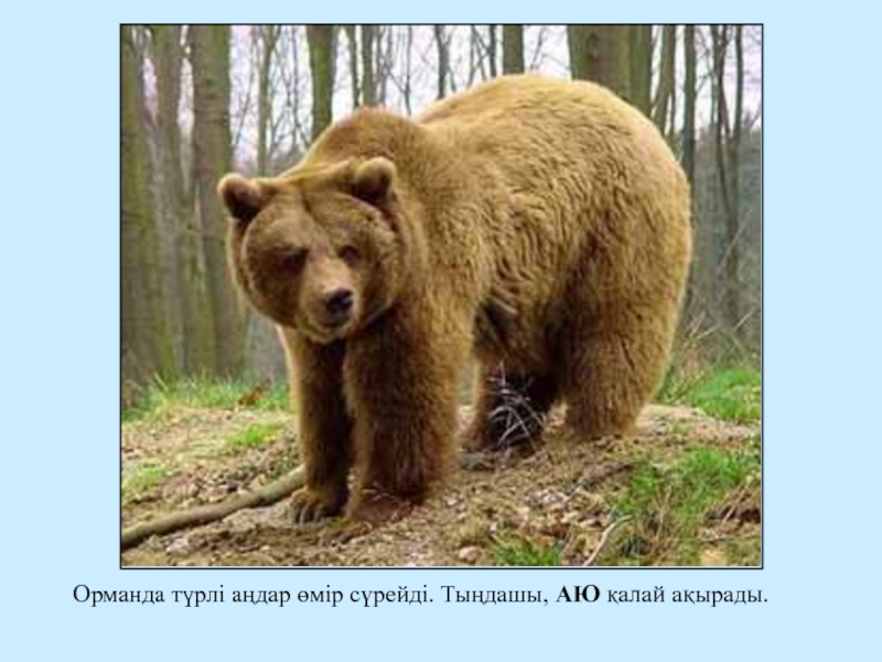 Слайд 11Орманда түрлі аңдар өмір сүрейді. Тыңдашы, АЮ қалай ақырады.