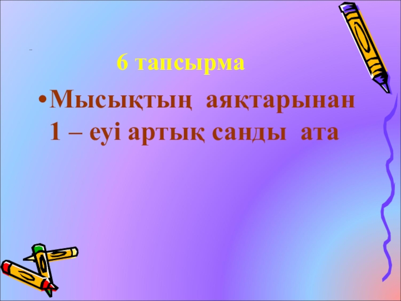 …6 тапсырмаМысықтың аяқтарынан 1 – еуі артық санды ата