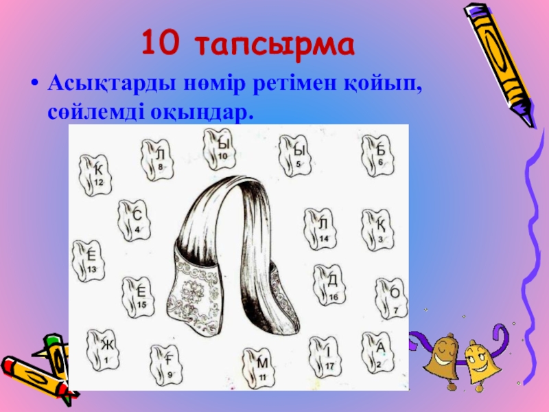 10 тапсырмаАсықтарды нөмір ретімен қойып, сөйлемді оқыңдар.