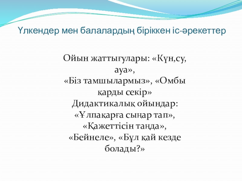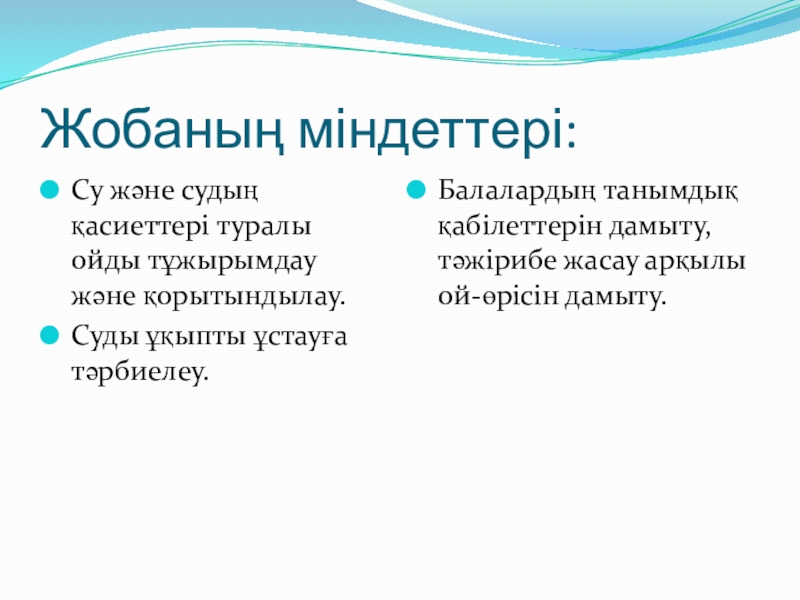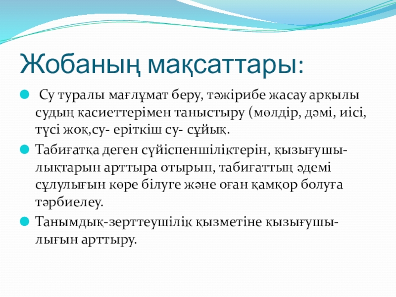 Балалардың танымдық қабілеттерін дамыту, тәжірибе жасау арқылы ой-өрісін дамыту.