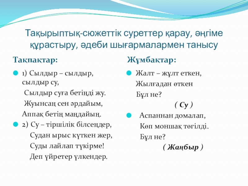 -Ашық сабақ “Ерте,ерте,ертеде су өмір сүріпті...”