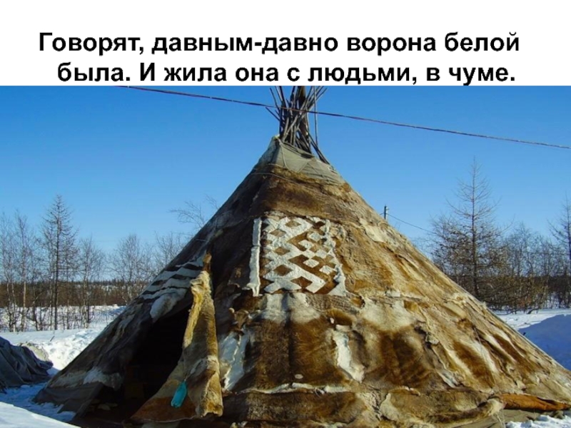 Говорят, давным-давно ворона белой была. И жила она с людьми, в чуме.