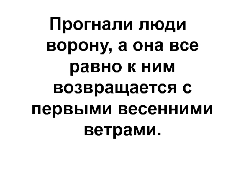 Слайд 11Прогнали люди ворону, а она все равно к ним возвращается с