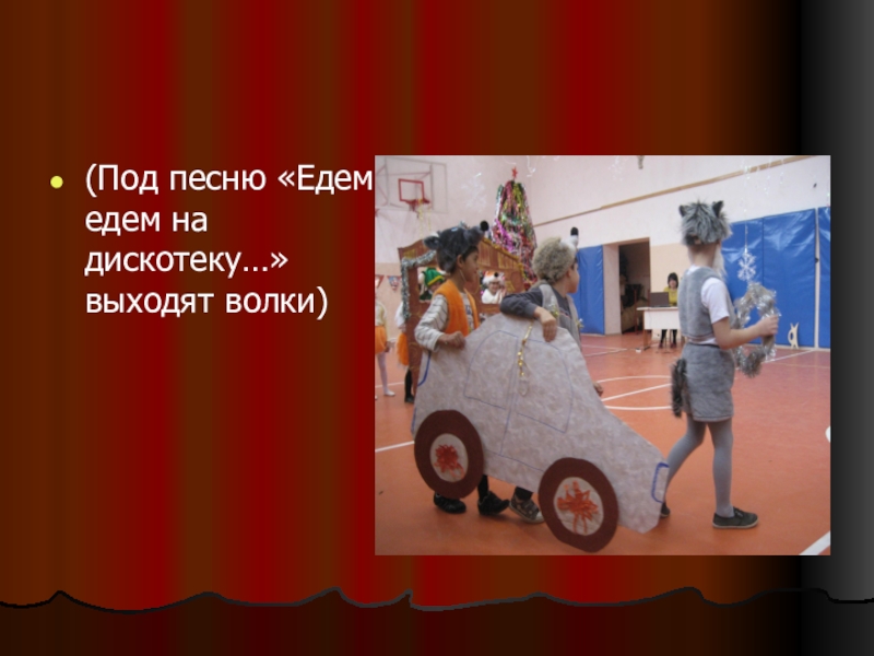 (Под песню «Едем едем на дискотеку…» выходят волки)
