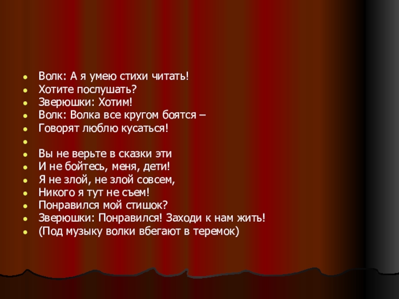 Волк: А я умею стихи читать!