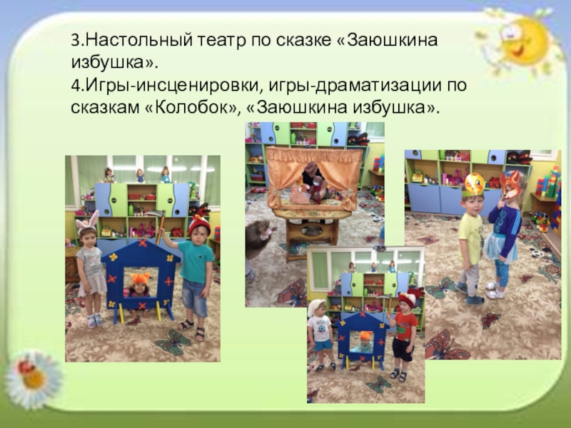 Слайд 113.Настольный театр по сказке «Заюшкина избушка».
