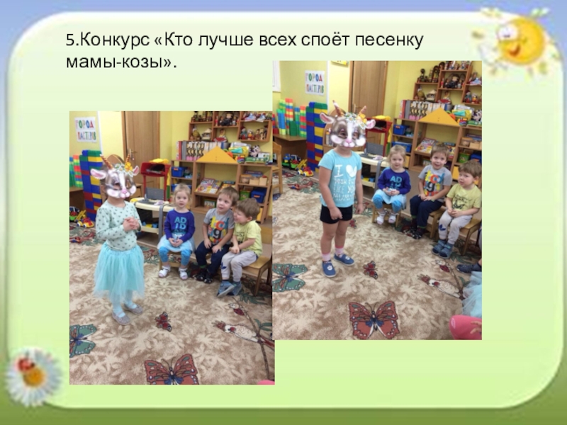 Слайд 125.Конкурс «Кто лучше всех споёт песенку мамы-козы».