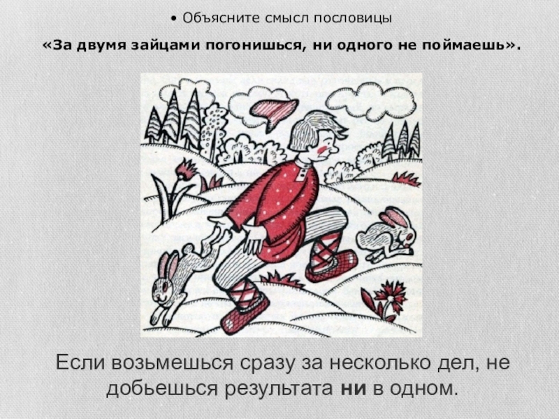 Если возьмешься сразу за несколько дел, не добьешься результата ни в одном.