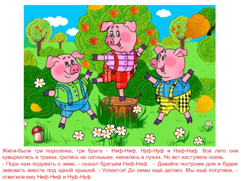 Слайд 2Жили-были три поросёнка, три брата – Ниф-Ниф, Нуф-Нуф и Наф-Наф. Всё