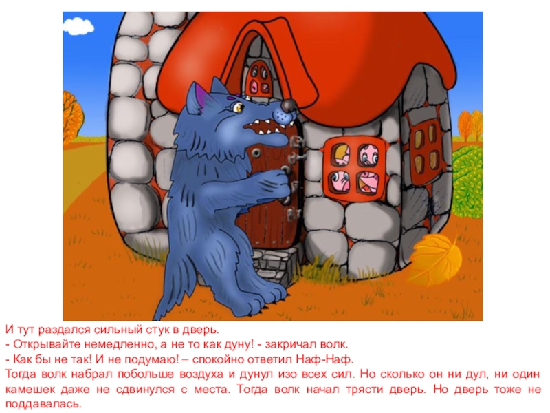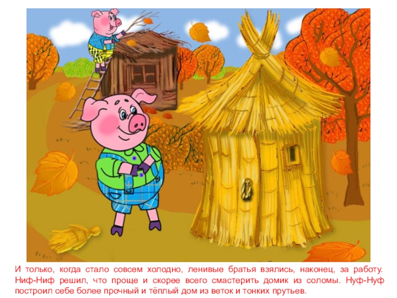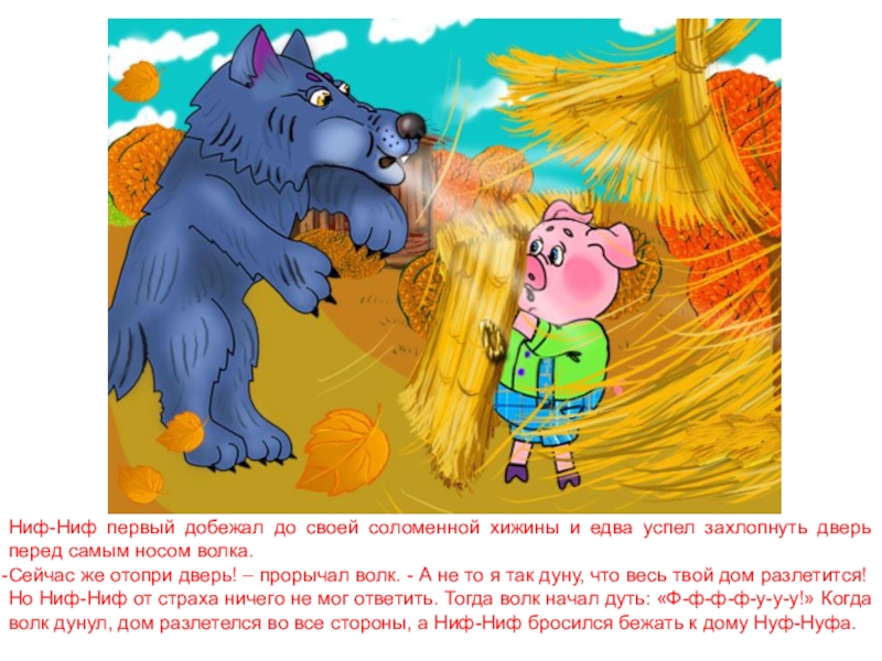 Слайд 6Ниф-Ниф первый добежал до своей соломенной хижины и едва успел захлопнуть