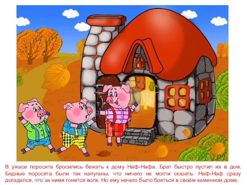 Слайд 8В ужасе поросята бросились бежать к дому Наф-Нафа. Брат быстро пустил