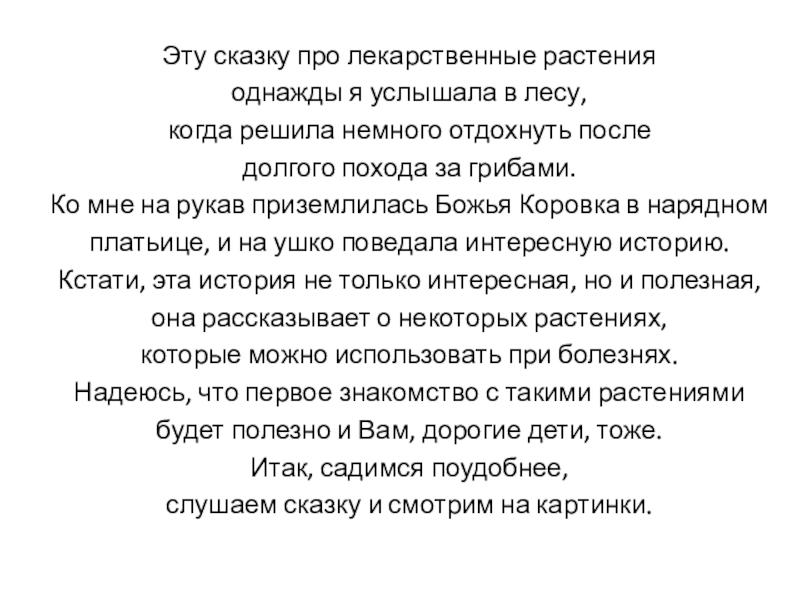 она рассказывает о некоторых растениях,