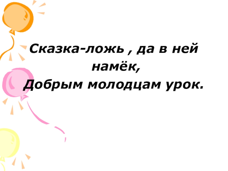 Сказка-ложь , да в ней намёк,Добрым молодцам урок.