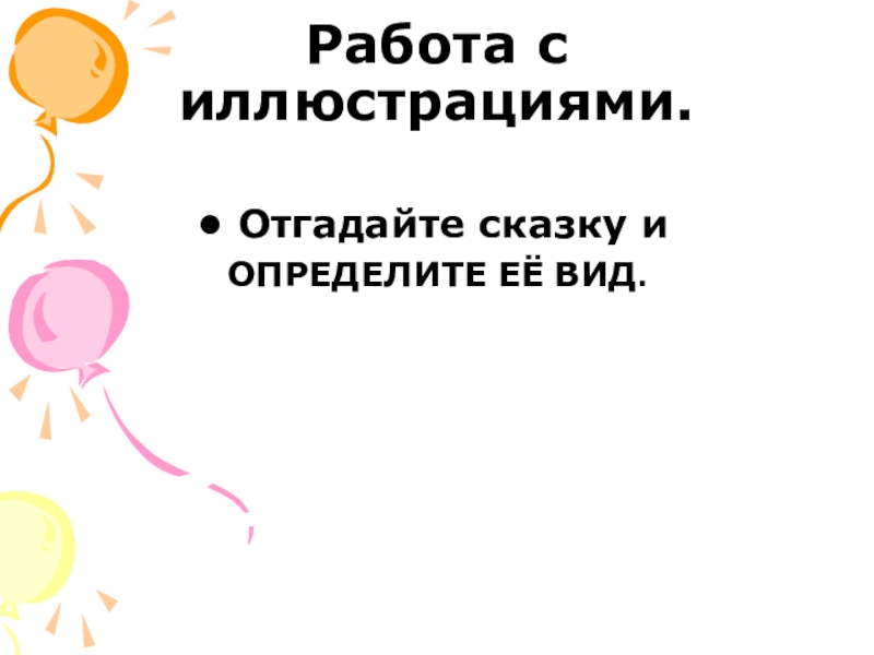 Работа с иллюстрациями.Отгадайте сказку и ОПРЕДЕЛИТЕ ЕЁ ВИД.