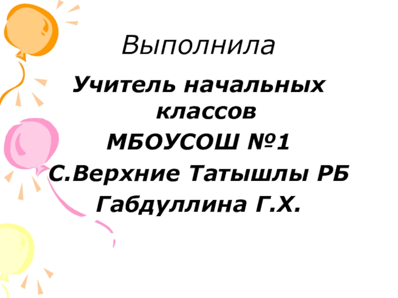 ВыполнилаУчитель начальных классовМБОУСОШ №1С.Верхние Татышлы РБГабдуллина Г.Х.