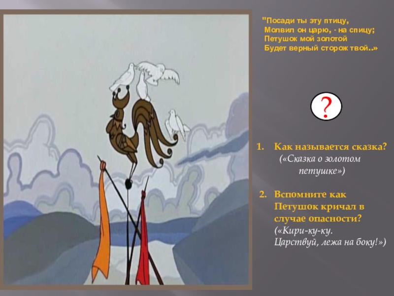 2. Вспомните как Петушок кричал в случае опасности? («Кири-ку-ку.