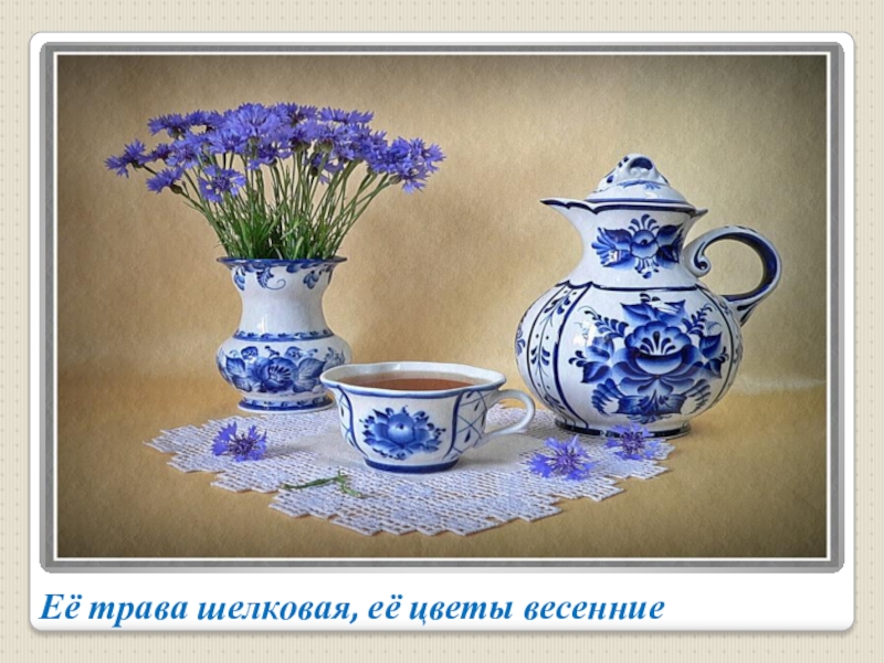 Слайд 12Её трава шелковая, её цветы весенние