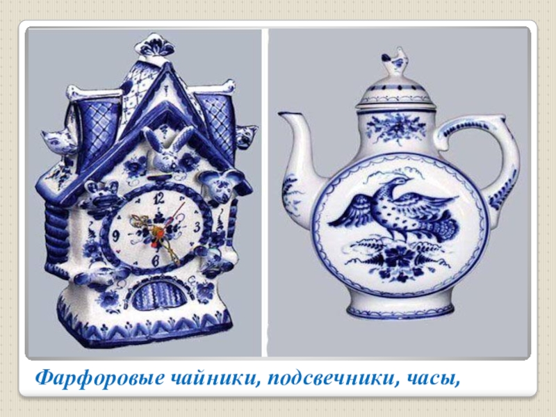 Слайд 2Фарфоровые чайники, подсвечники, часы,
