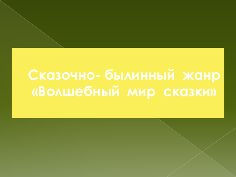 Презентация, доклад на тему Сказочно- былинный жанр Волшебный мир сказки