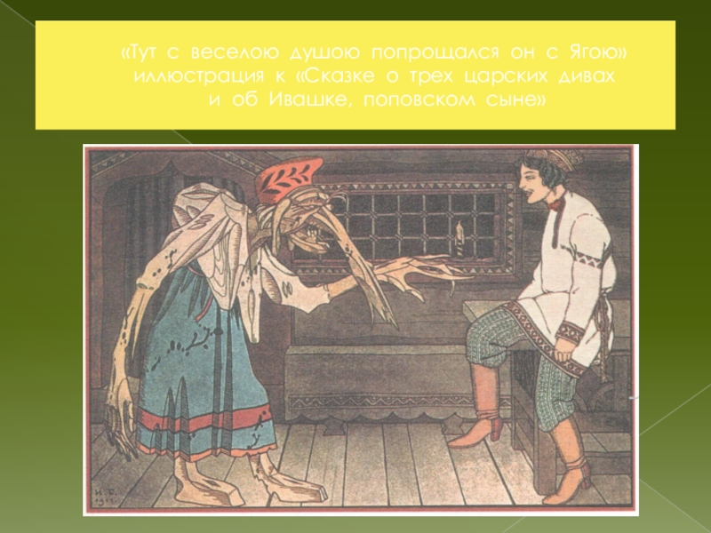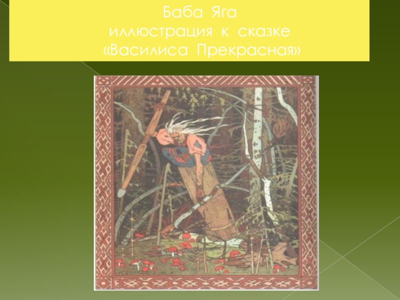 Слайд 9Баба Яга иллюстрация к сказке «Василиса Прекрасная»