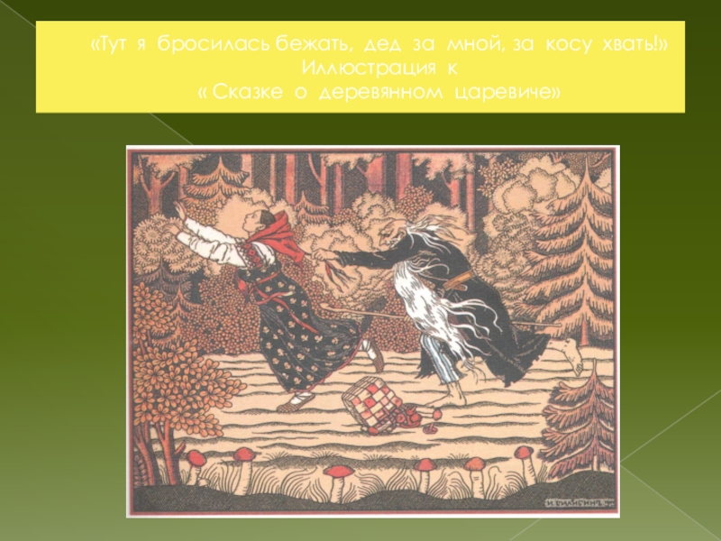 Слайд 10«Тут я бросилась бежать, дед за мной, за косу хвать!» Иллюстрация к