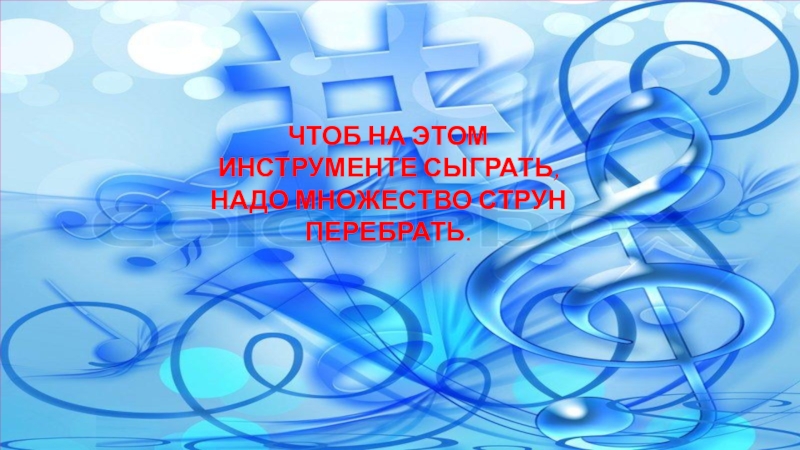 Слайд 18ЧТОБ НА ЭТОМ ИНСТРУМЕНТЕ СЫГРАТЬ, НАДО МНОЖЕСТВО СТРУН ПЕРЕБРАТЬ.