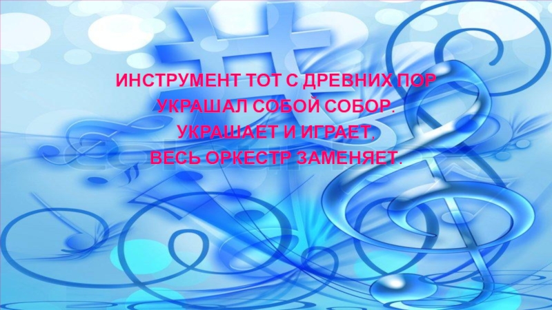 ИНСТРУМЕНТ ТОТ С ДРЕВНИХ ПОРУКРАШАЛ СОБОЙ СОБОР.УКРАШАЕТ И ИГРАЕТ,ВЕСЬ ОРКЕСТР ЗАМЕНЯЕТ.