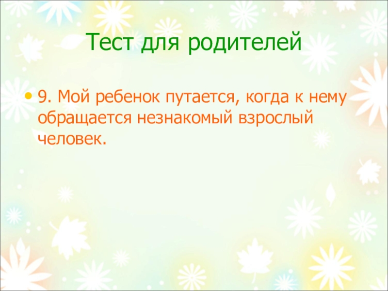 Тест для родителей9. Мой ребенок путается, когда к нему обращается незнакомый взрослый человек.