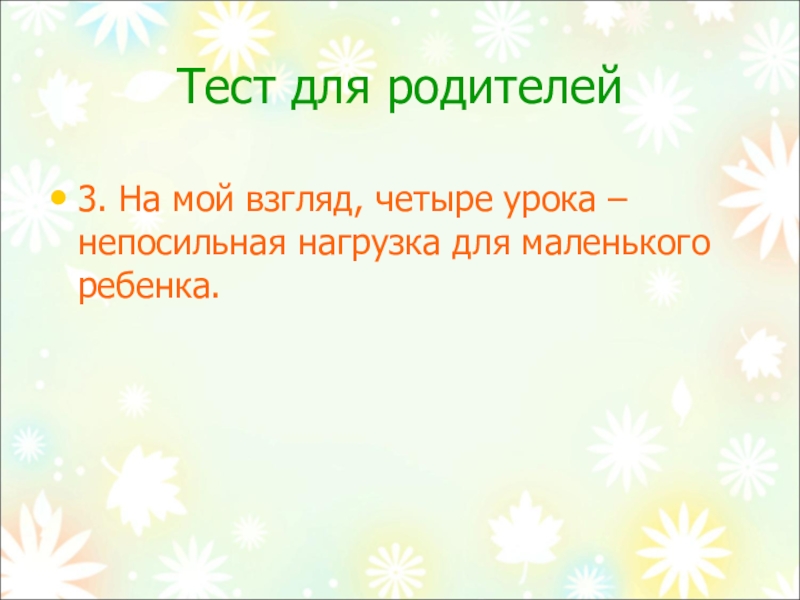Тест для родителей3. На мой взгляд, четыре урока – непосильная нагрузка для маленького ребенка.