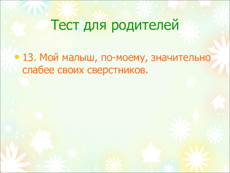 Тест для родителей13. Мой малыш, по-моему, значительно слабее своих сверстников.