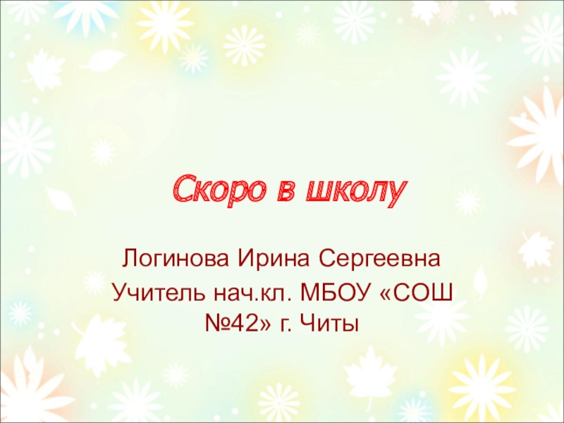 Скоро в школуЛогинова Ирина СергеевнаУчитель нач.кл. МБОУ «СОШ №42» г. Читы