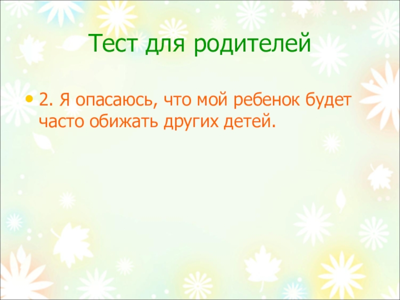 Тест для родителей2. Я опасаюсь, что мой ребенок будет часто обижать других детей.