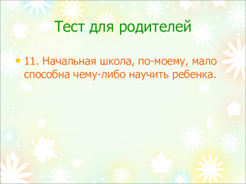 Тест для родителей11. Начальная школа, по-моему, мало способна чему-либо научить ребенка.