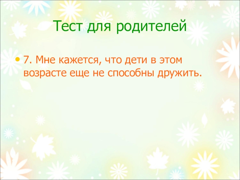 Тест для родителей7. Мне кажется, что дети в этом возрасте еще не способны дружить.