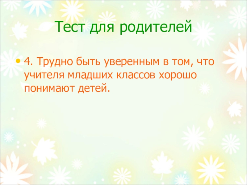 Тест для родителей4. Трудно быть уверенным в том, что учителя младших классов хорошо понимают детей.