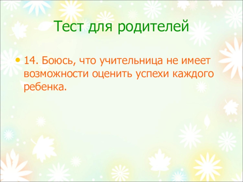 Тест для родителей14. Боюсь, что учительница не имеет возможности оценить успехи каждого ребенка.